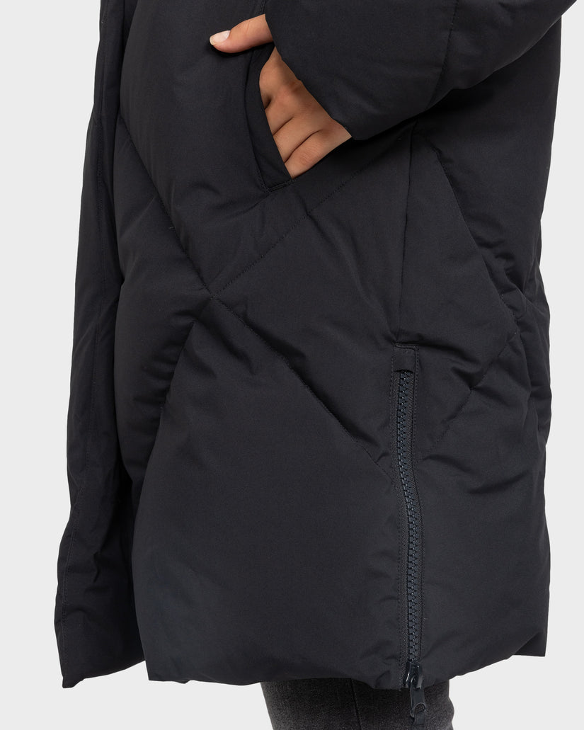 Stay cozy and dry in the Abbie Insulated Jacket by ROXY. This partially recycled polyester shell is waterproofed with 10K ROXY DryFlight ® technology and filled with a traceable insulation mix for superior warmth. The hooded design, zippered pockets, and adjustable hem keep the elements at bay while you tackle the great outdoors. The Abbie is the perfect high-performance jacket to take on your next adventure. Featured here in the True Black colorway.