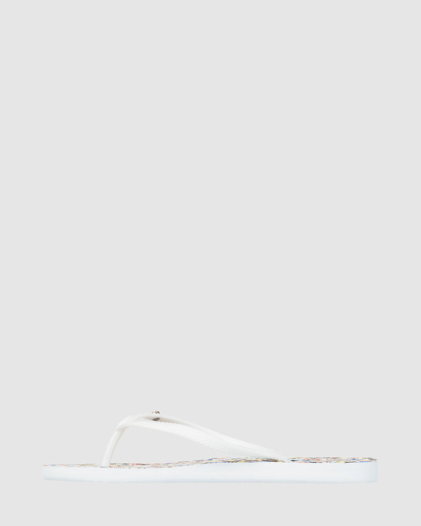 Lightweight and durable, these women's flip-flop sandals are designed with a printed footbed and a flexible rubber outsole, adding textured straps and a ROXY branded metal pin for a pop of flavour. Available in a range of colours to match any outfit.