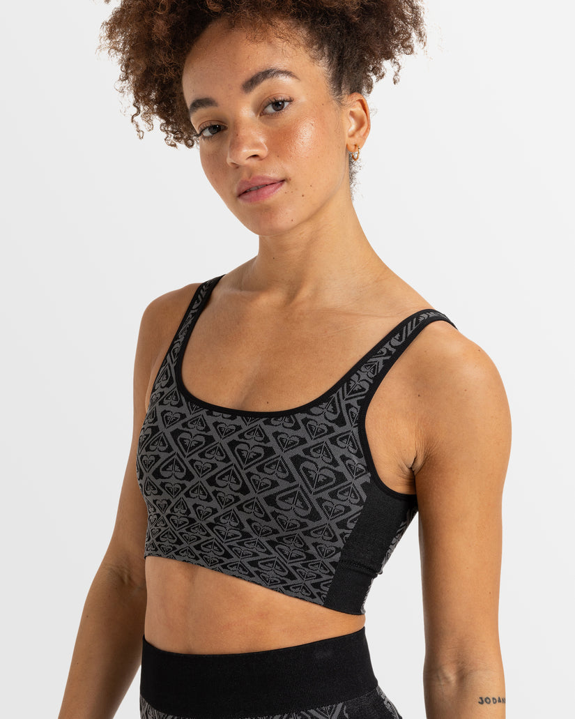 Feel the power of the Chill Out Seamless Heart Bra from the ROXY Active Collection, crafted with a nylon elastane-jacquard blend extra stretch fabric and DryFlight® moisture-wicking tech to keep you fresh and dry while you train. This low-support, printed sports bra has a square neck, over-the-shoulder straps, and a seamless design that feels like a second skin.