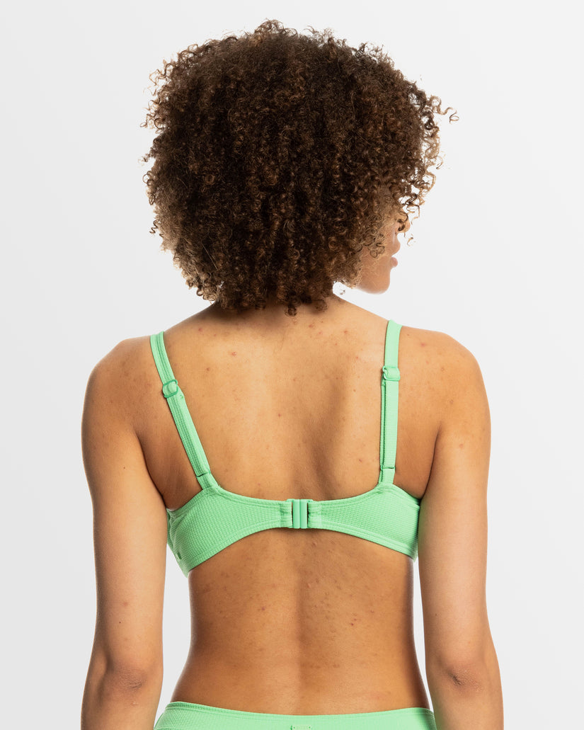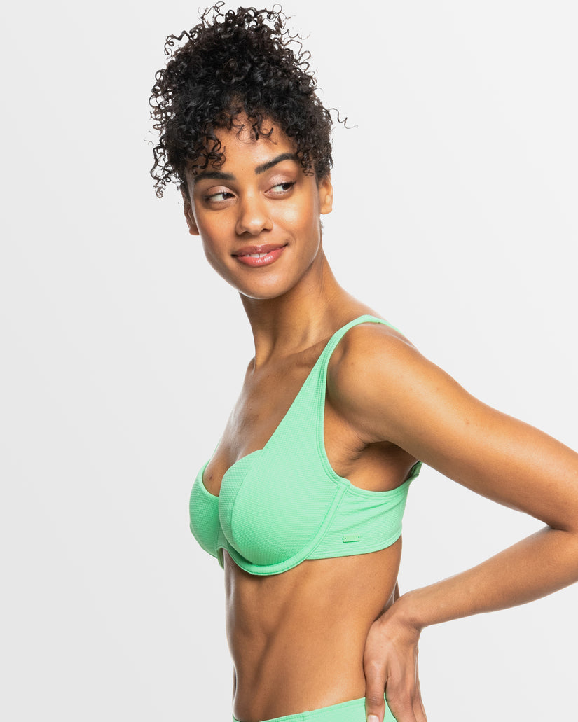 Made of soft and strong recycled nylon, this underwire bra bikini top is designed with enhanced support for D-cup sizing. Complete with adjustable over-the-shoulder straps, a butterfly back closure, and seaming details to flatter your shape.