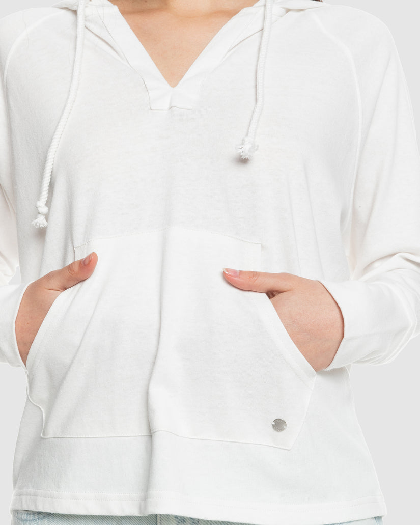 Crafted of jersey slub fabric, ROXY's Destination Surf Long-Sleeve Hooded Top has a relaxed fit with a V-neck, a kangaroo pouch pocket, and a hood drawcord with tassels. Loose and laid-back, it’s the perfect mid-weight layer to cozy up on the couch or after surf.