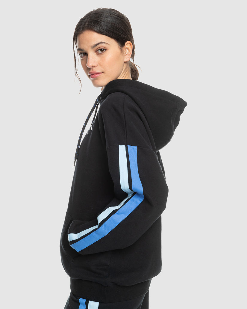 Maximize your recovery days in the Essential Energy Band Hoodie from the ROXY Active Collection. Crafted with organic cotton terry fabric, this loose-fit sweatshirt has a kangaroo pouch pocket, ribbed cuffs, logo chest branding, and a sporty stripe down the sleeves. Pair with the matching sweatpants for the ultimate athletic set.