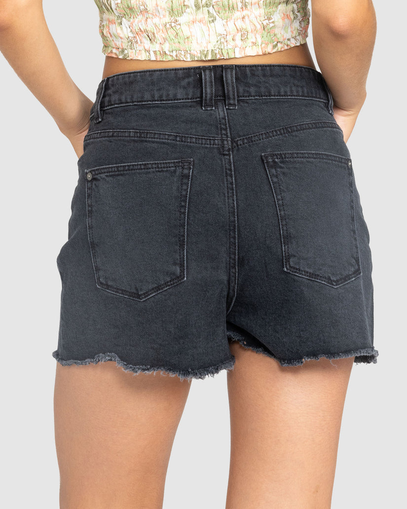 Slip into the Eva vintage-washed denim shorts from ROXY and let your laidback vibes shine. The partially recycled cotton fabric delivers the perfect amount of stretch and comfort, while the frayed hems and metal rivet detail add a touch of effortless cool. From beach days to backyard BBQs, these relaxed-fit cutoffs are an essential for your warm-weather wardrobe. Featured here in the Anthracite colorway.