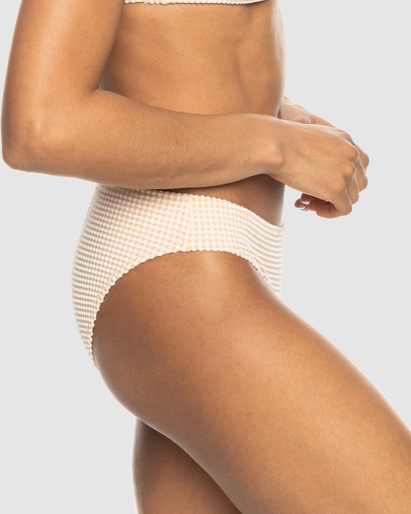 Made of recycled seersucker fabric in a classic checker print, these Gingham bikini bottoms have a low-rise waist and slender side ties to customize the fit. Offering fuller bum coverage, this style is perfect for an active lifestyle.