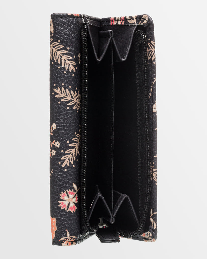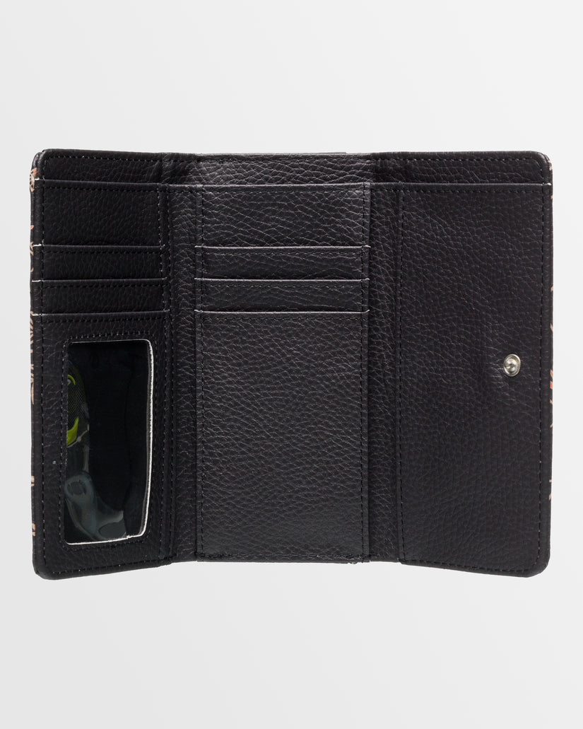 Keep your essentials stylishly organized with this compact tri-fold wallet. Featuring a handy exterior coin pocket and multiple card slots, it's perfect for on-the-go convenience. The sleek polyurethane fabric and metal Roxy plate add a touch of laid-back cool to your everyday carry.