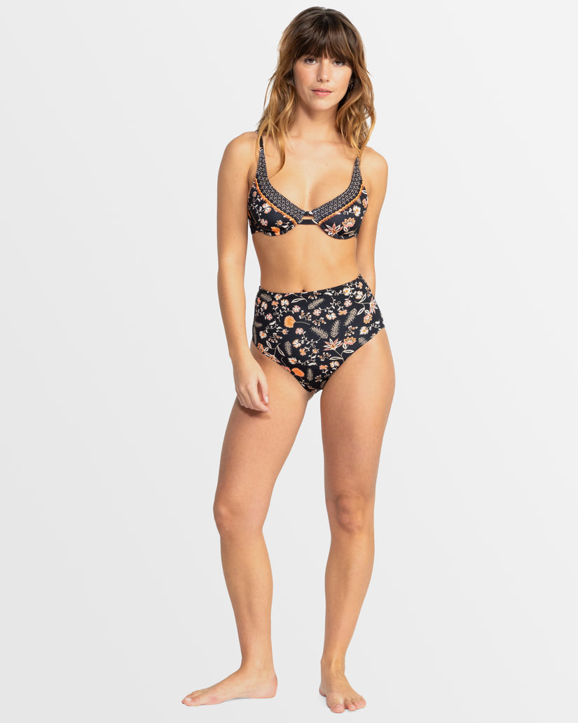 These high-waist, low-rise bikini bottom offer moderate coverage, while the soft, stretchy recycled nylon blend ensures all-day comfort from sand to surf. It also features a fixed closure and signature ROXY branding for that classic surf look.