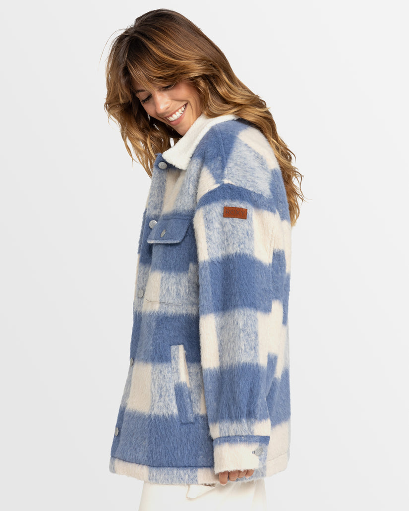 This ROXY shacket is the ultimate in mountain chic. The wool-blend plaid fabric gives it a cozy feel, while the roomy silhouette with multiple pockets keep you looking effortlessly cool. Partially recycled buttons and a suede ROXY patch add refined touches to this versatile layering piece that transitions seamlessly from season to season. Featured here in the Parchement Be Bold Plaid colorway.