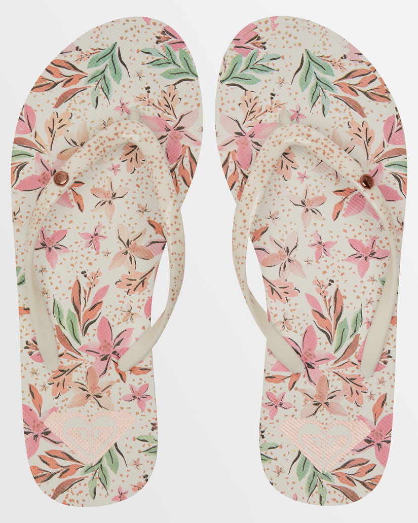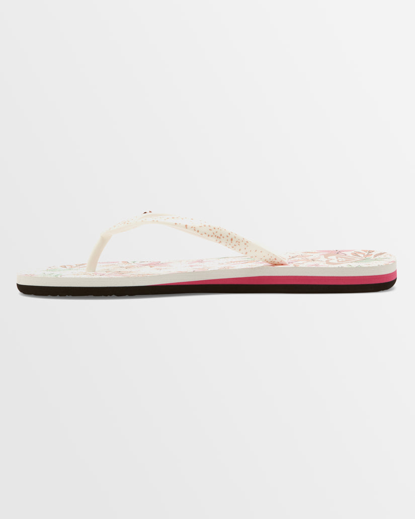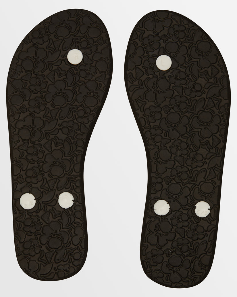 Slip into paradise mode with the Portofino flip-flops for women. Made entirely with PVC-free recycled materials, the thong sandals feature a flexible rubber footbed printed with an environmentally-friendly ink graphic and soft upper straps topped with a ROXY metal pin.