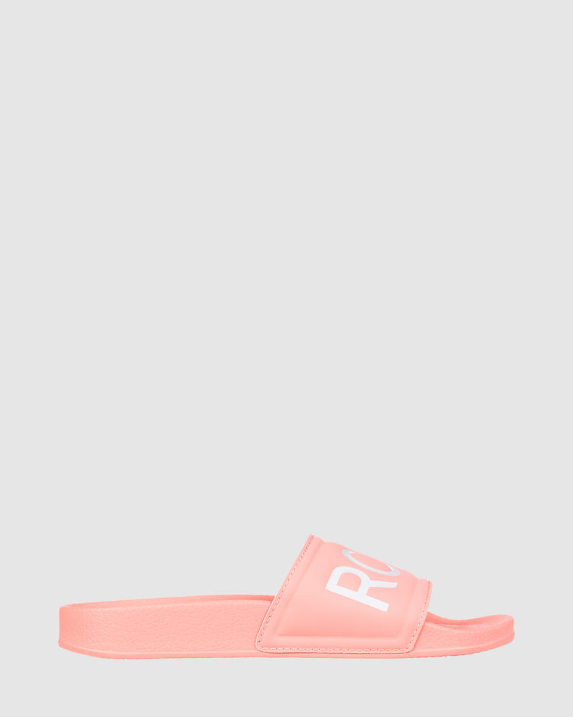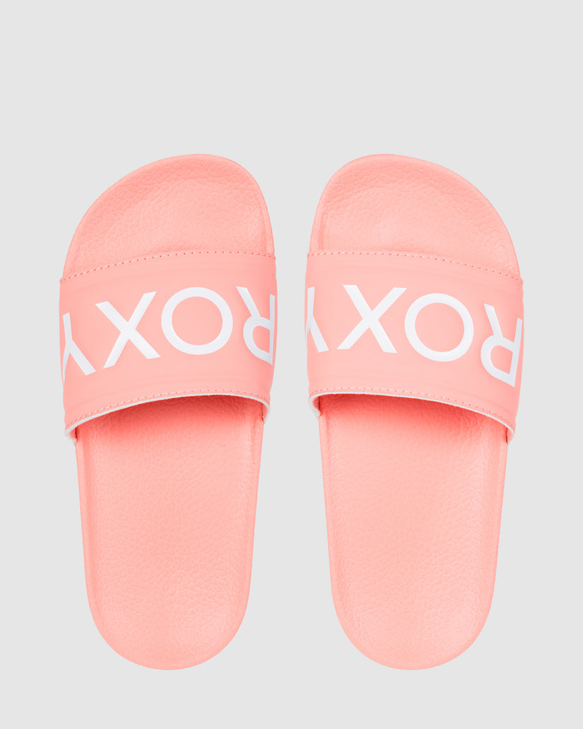 Slide into your comfort mode with the Slippy sandals for girls. The easy slip-on design features a comfortable, nylon-lined rubber upper with a ROXY logo and a moulded footbed. Complete with a textured outsole for plenty of traction and support.