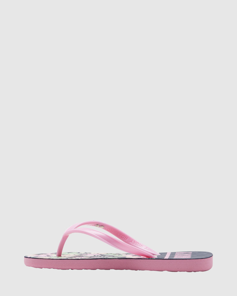 Lightweight and durable, these girls' flip-flop sandals are designed with a textured footbed and a flexible rubber outsole, adding a ROXY branded metal pin and signature print for a little something extra. Available in a range of colours to match any outfit.