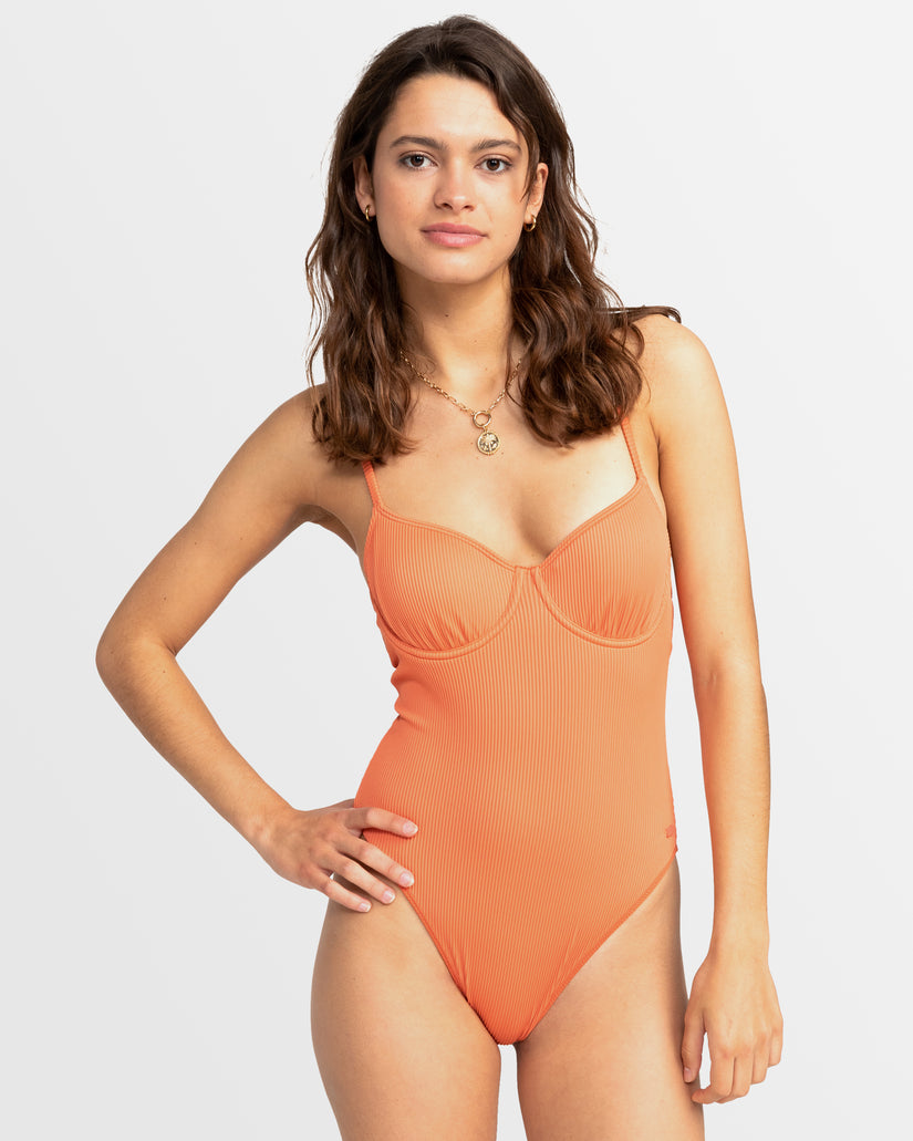 Offering high support with underwire and side boning, this ultra-feminine and flattering one-piece swimsuit from our Roxy Love collection is made of soft and stretchy recycled material. It features an elongated shape and seamless finishes to compliment your curves, plus an open back with thin tie straps.
