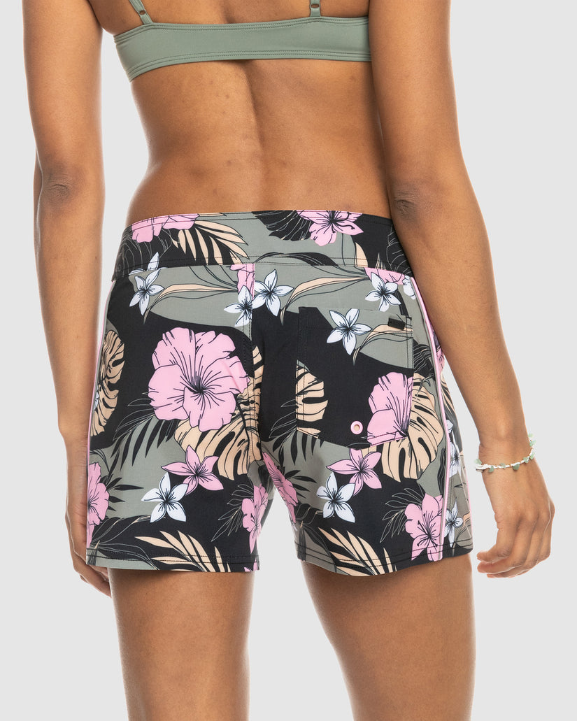 Surf like a champion in ROXY Pro's The 93 Win Printed Boardshorts, featuring 4-way stretch poplin-blend fabric and a fixed waist with a lace-up drawcord for strong support. Adding a back pocket, striped seams, and a floral print for a bold look, these performance boardshorts take a modern twist on an iconic model.