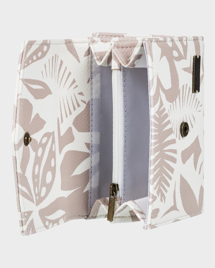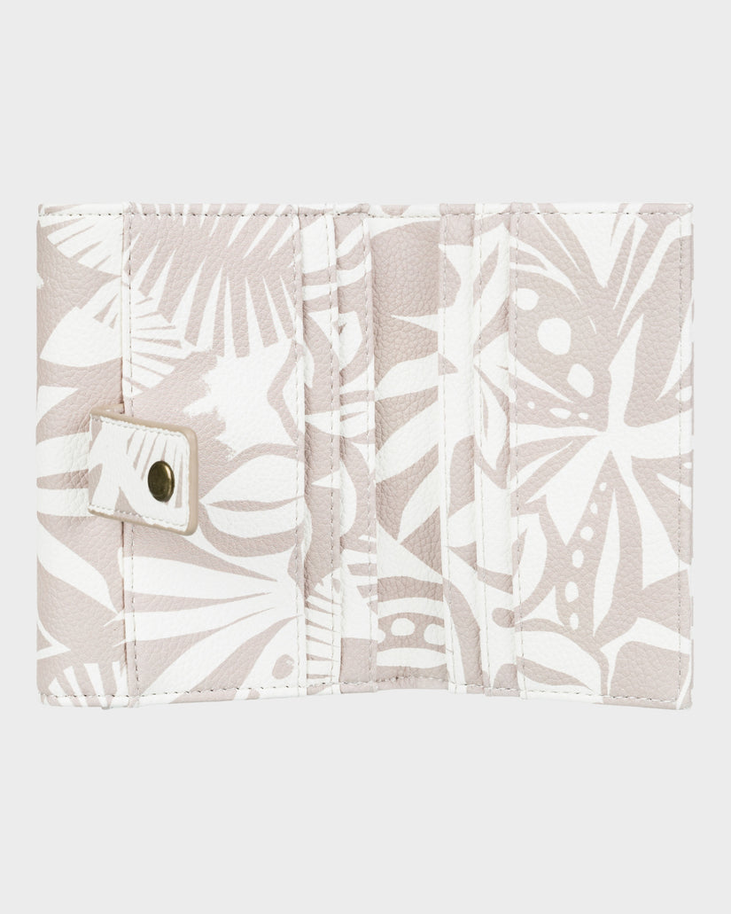 Keep your essentials organized and secure with this compact wallet. Featuring multiple compartments and a snap closure, it's perfect for everyday use. The sleek polyurethane fabric and metal Roxy plate add a touch of style to this practical accessory.