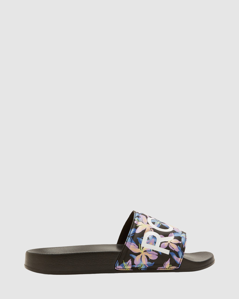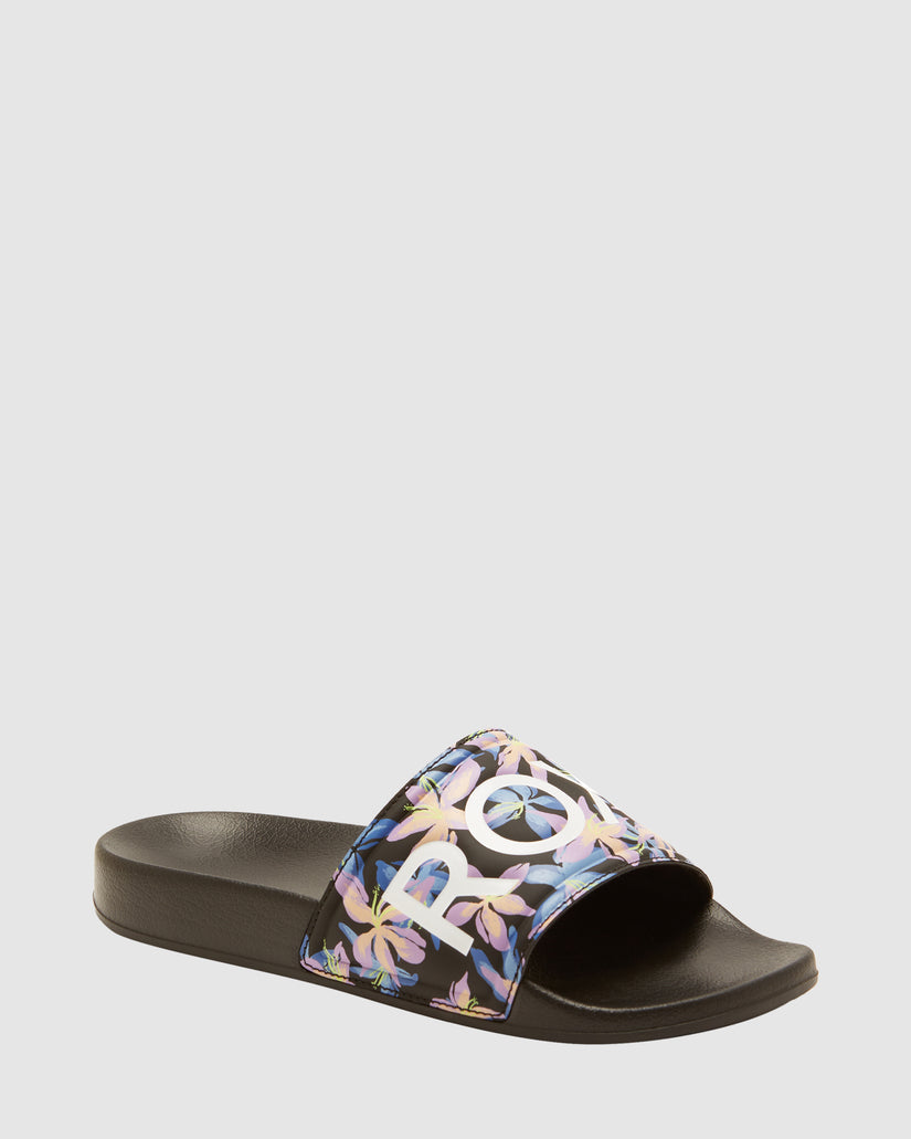 A nylon-lined rubber upper with iconic ROXY branding adds classic surf style to these women's slide sandals. The easy slip-on design is complete with a moulded-for-comfort footbed and a textured outsole for plenty of traction and support.