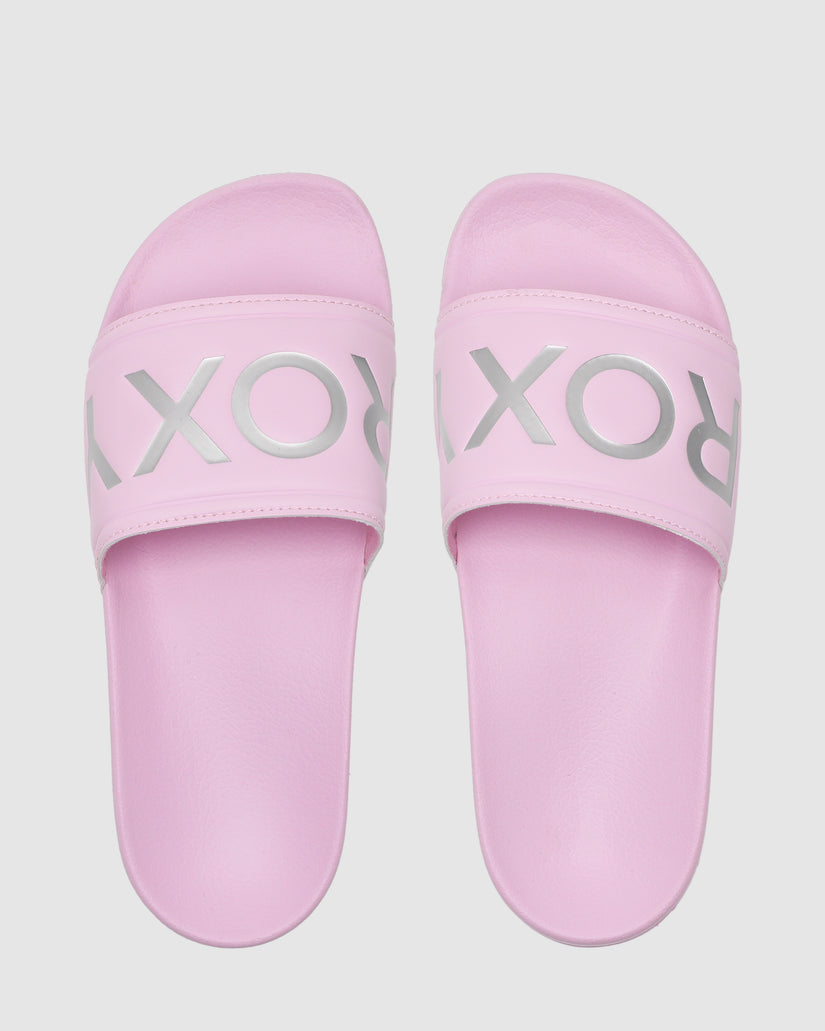 A nylon-lined rubber upper with iconic ROXY branding adds classic surf style to these women's slide sandals. The easy slip-on design is complete with a moulded-for-comfort footbed and a textured outsole for plenty of traction and support.