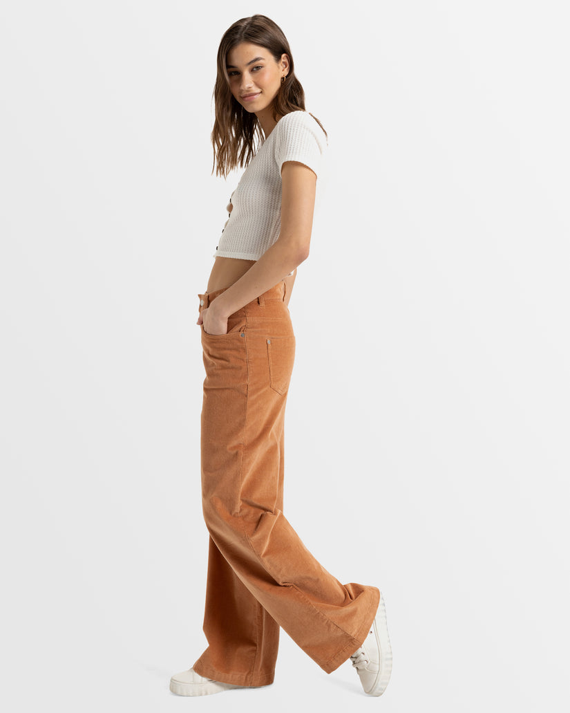 Take the surf lifestyle everywhere you roam with our ROXY Surf On A Cloud corduroy pants. The wide-leg silhouette and high-rise waist create a retro-chic look, while the cotton-elastane blend keeps you all-day comfy. With five pockets and metal rivets, these versatile trousers are ready to go from beach to brunch and beyond. Featured here in the Camel colorway.