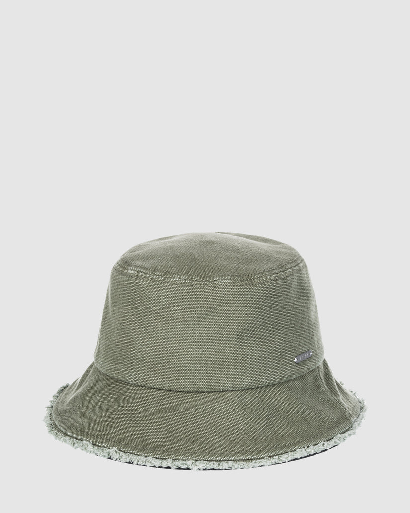 Made of solid cotton canvas, ROXY's Victim of Love bucket hat features logo branding and a choice of colorways. Add a raw hem for a laid-back touch, this sun hat is a must-have for every beach babe.